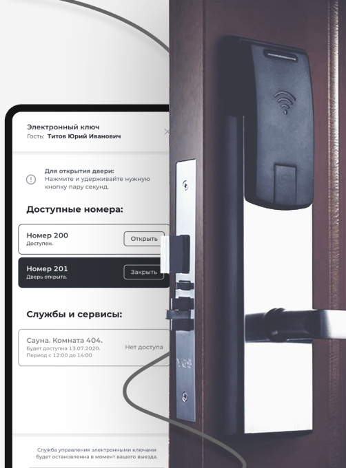 Управляйте и позвольте управлять гостям электронными замками со своего смартфона. С помощью электронного журнала отслеживайте перемещения персонала и гостей в отеле. С легкостью настраивайте расписание и области доступа для служб и гостей, назначив в соответствие должность, категорию номера или тариф проживания.
